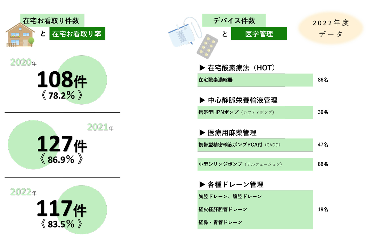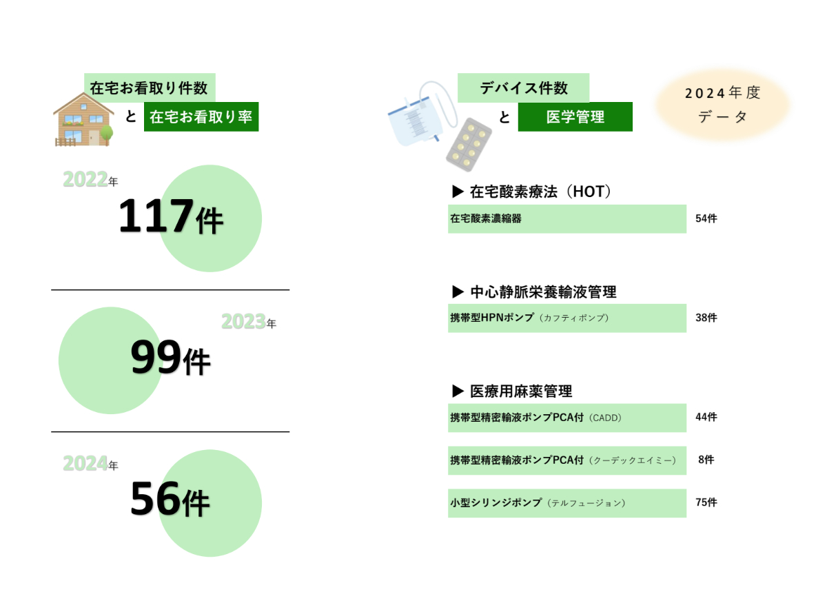 - 同一敷地内にホスピス病棟40床を持つ札幌南徳洲会病院があり、自宅での療養が困難になった場合、入院して質の高い緩和ケアを受けることができます。